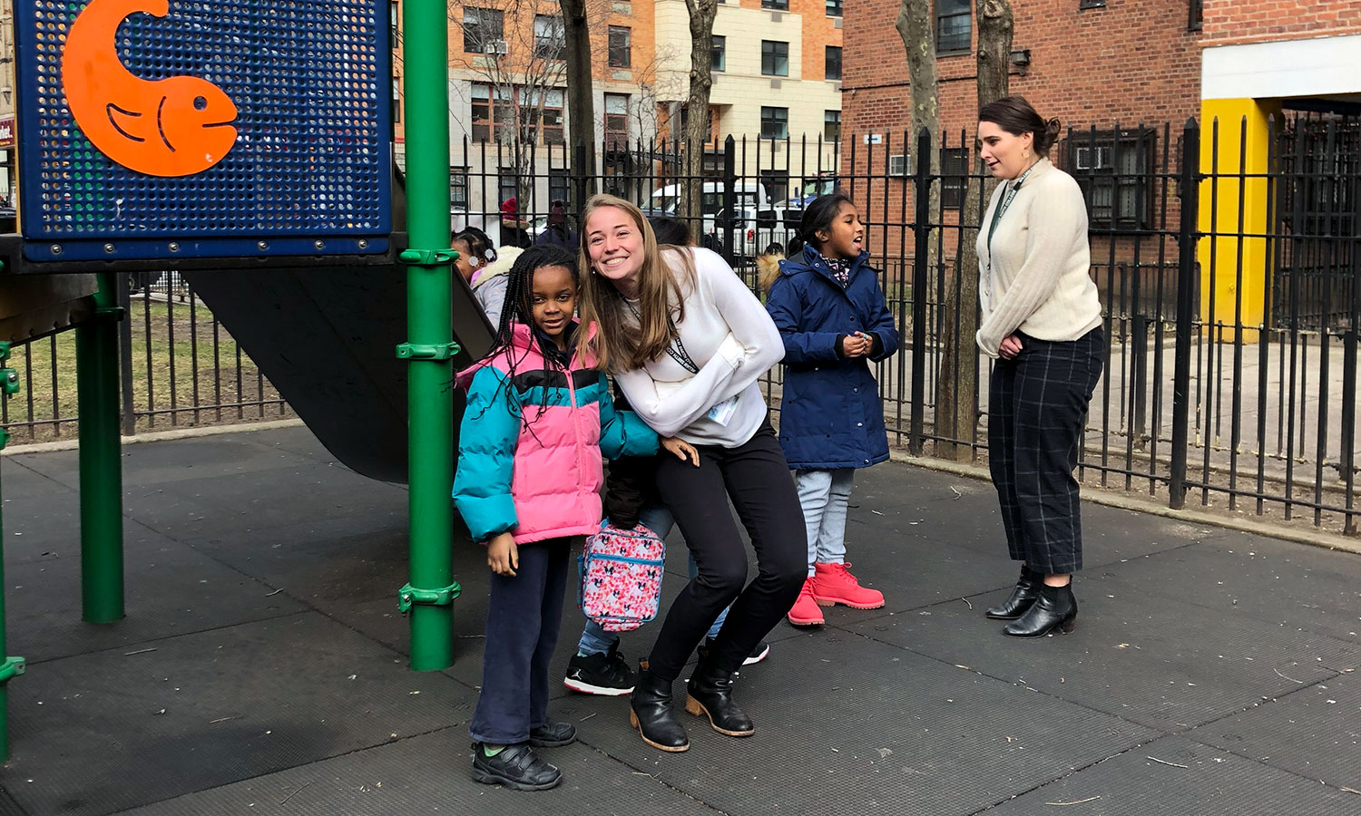 While in New York City, students shadowed teachers and helped in classrooms at PS 188 The Island School in Manhattan and Soundview Academy for Culture and Scholarship in the Bronx, where they connected with Soundview Vice Principal Dorothy Nettey-Addo 96. The program was led by Director of Secondary Education Andrea Huskie and Director of Elementary Education and Coordinator of Student Supervision Jennifer Harris P21, P22.
